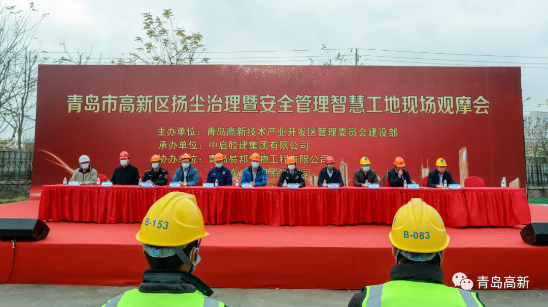 2020年11月19日,为进一步增强建筑工程参建的安全生产意识,提高各项目扬尘治理及消防管理水平,青岛高新区在易邦生物科技产业园施工现场召开扬尘治理暨安全管理智慧工地现场观摩会。