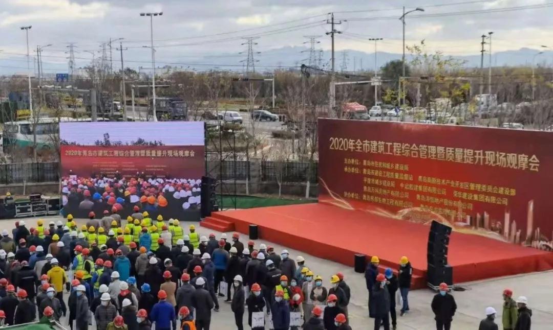 2020年11月20日,为巩固青岛市住宅工程渗漏、开裂专项治理两大行动成果,进一步提高建筑工程科技含量,营造精品工程的创建氛围,推动树立“质量第一”意识,青岛市住房和城乡建设局召开2020年青岛市建筑工程综合管理暨质量提升现场观摩会。